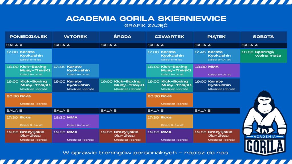 Duża, przestronna i bogato wyposażona sala treningowa oraz druga, mniejsza - dla tych co walczą w parterze. (więcej…)